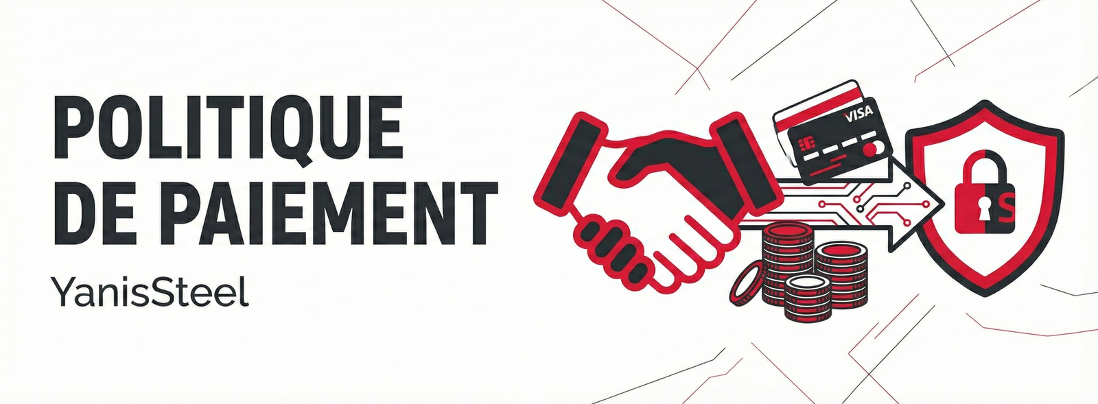 YanisSteel se réserve le droit de modifier la présente Politique de paiement à tout moment. Les modifications prennent effet dès leur publication sur le site.